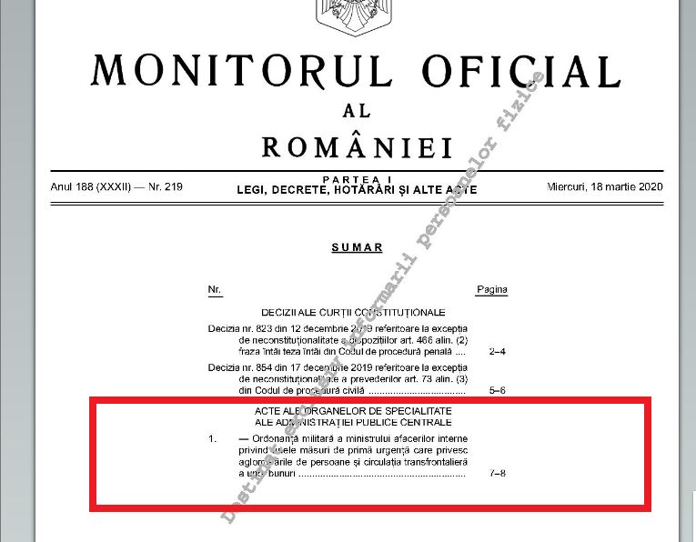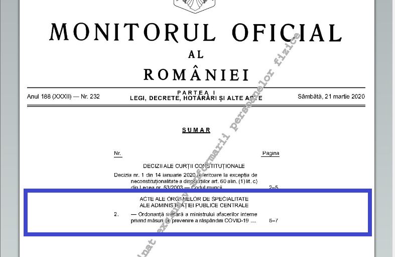 În data de 26.03.2020 Guvernul României a emis un nou model al adeverinței. Documentul poate fi descărcat de aici, existând posibilitatea completării electronice a acestuia, tipărirea fiind necesară pentru a putea fi semnat. *** Având în vedere dispozițiile art. 5 din Ordonanța militară nr. 2/2020, redăm în continuare conținutul agreat de autorități în ceea ceContinuă lectura „Model adeverință pentru justificarea deplasării în temeiul Ordonanței Militare nr. 2/2020. UPDATE: nou model emis de Guvernul României”
